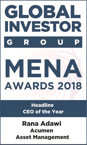 Acumen Asset Management won three awards during the annual awards ceremony held by MENA Fund Manager - the only magazine dedicated to fund management and investment news in the Middle East and North Africa- in Dubai on January 30th, 2018 to recognize and reward funds and asset managers that have outperformed their peers over the last year.